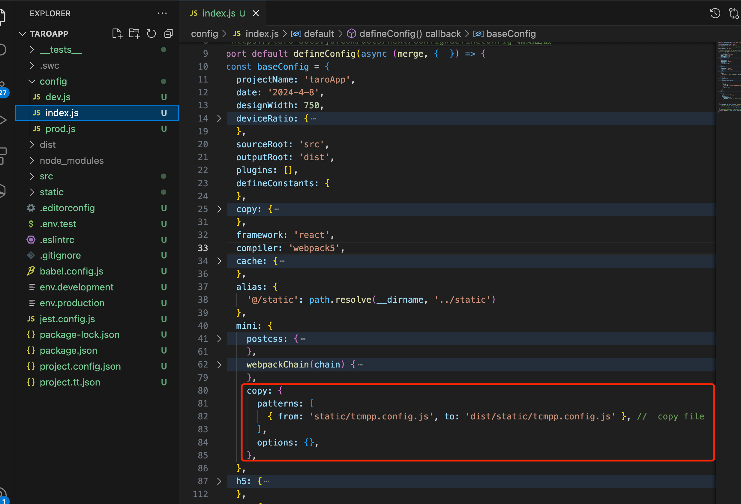 4.Since Tcmpp.config.js is not packaged into the taro product, it needs to be manually copied to the product dist directory through webpack configuration: