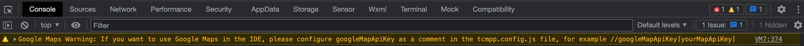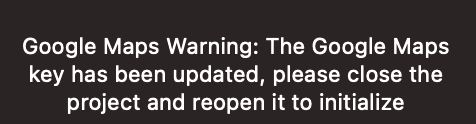 //googleMapApiKey[xxxxxxxxxxxxxxxxxxxxxxxxxxxx]3.After editing the googleMapApiKey of the Tcmpp.config.js file in the IDE, since the Google JavaScript API script needs to be re-injected, please close the current project and reopen it. The IDE will also give a corresponding pop-up window prompt: Google Maps Warning: The Google Maps key has been updated, please close the project and reopen it to initialize.